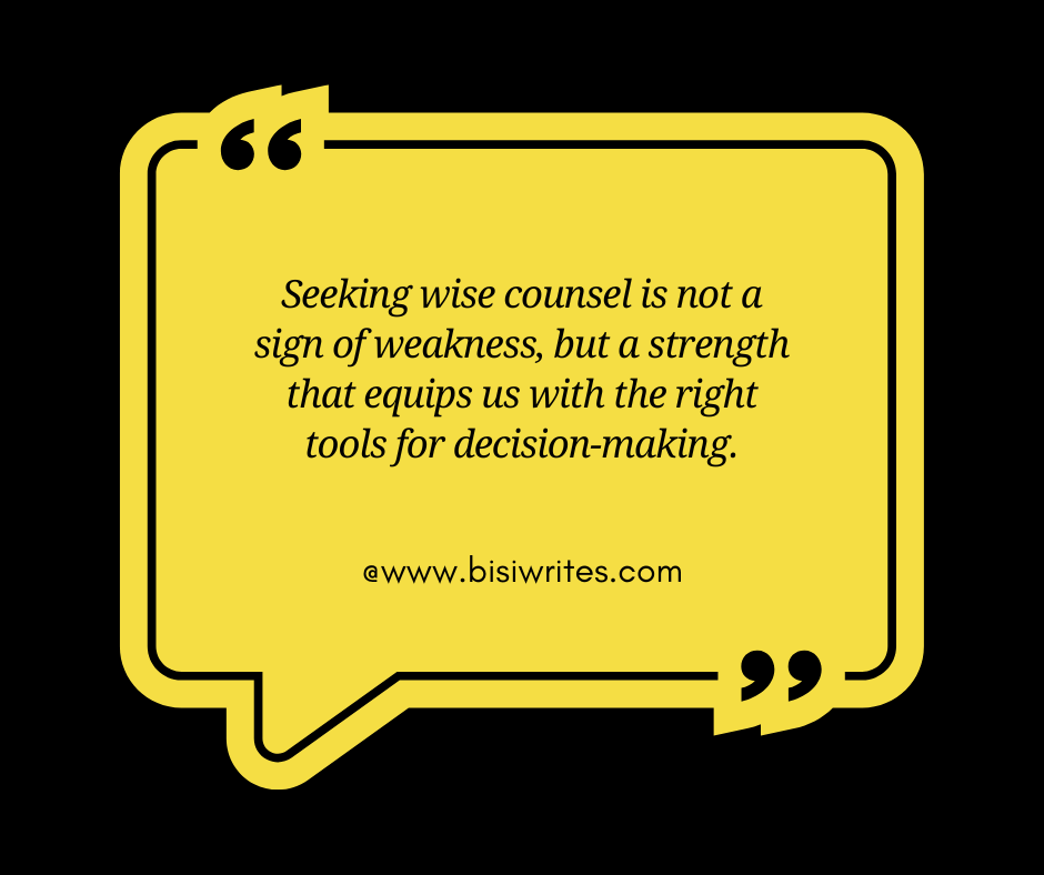 We may find ourselves in need of guidance from those we trust and have given permission to speak into our lives. Their advice can be a beacon of light when we are uncertain, providing us with the support and guidance we need. Remember, seeking wise counsel is not a sign of weakness, but a strength that equips us with the right tools for decision-making.
