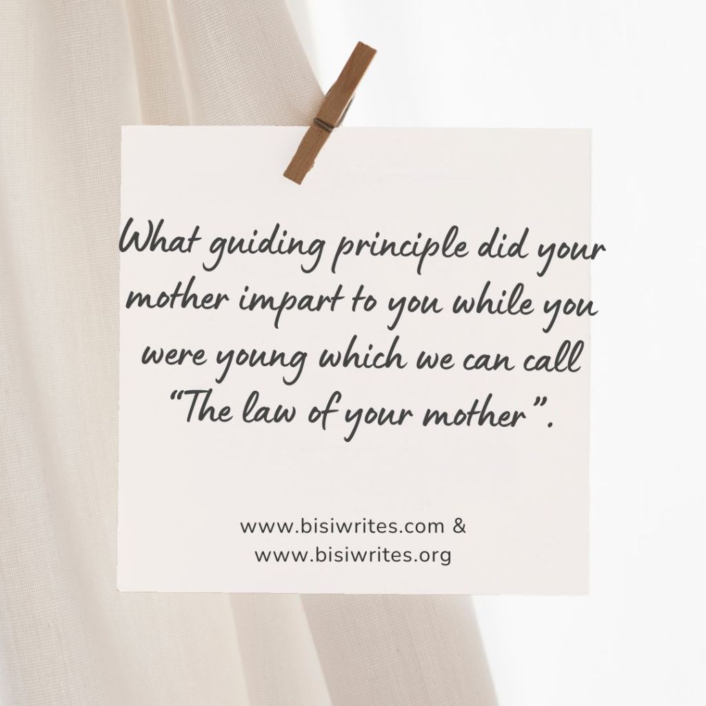 What guiding principle did your mother impart to you while you were young which we can call “The law of your mother”.