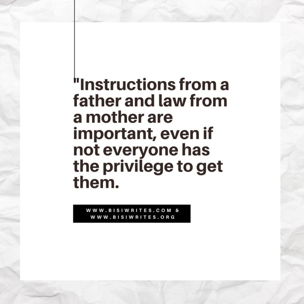 Instructions from a father and law from a mother are important, even if not everyone has the privilege to get them.